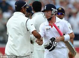As the England pair headed for the pavilion, India appealed for a run out which was upheld by the umpires after TV replays.With the crowd shouting their displeasure at the decision, the two teams held talks during the interval and India captain Mahendra Dhoni sportingly agreed to withdraw the appeal.